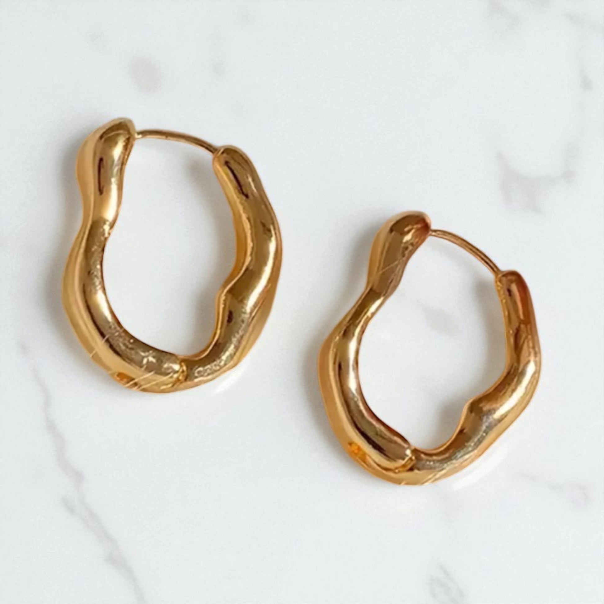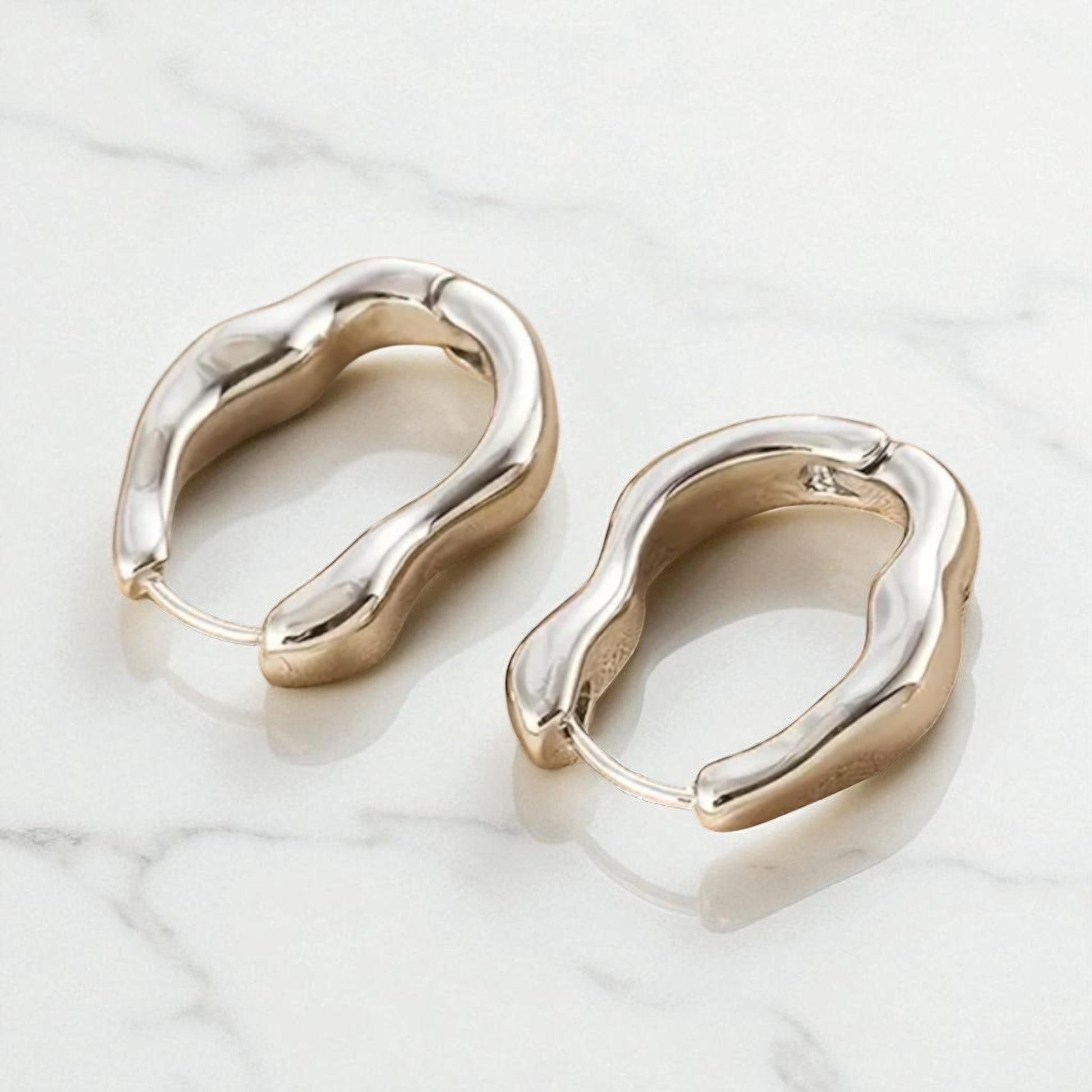 Die Arinya Ohrringe überzeugen mit ihrem einzigartigen, leicht welligen Design, das Eleganz und Minimalismus perfekt verbindet. Gefertigt aus hochwertigem Edelstahl 316L sind sie hypoallergen, farbbeständig und angenehm leicht zu tragen.