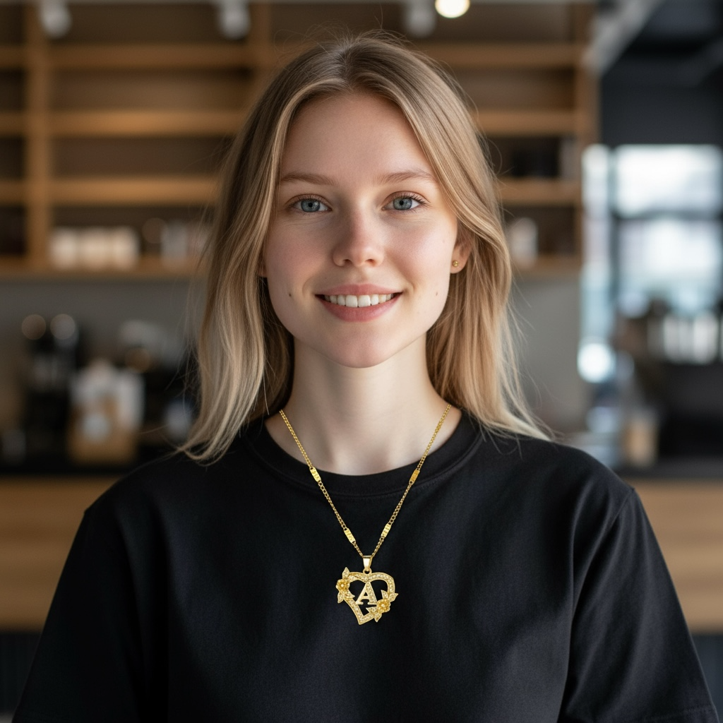 Zeitlose Halskette aus goldfarbenem Edelstahl mit Herz-Anhänger und Anfangsbuchstaben A–Z. Perfekt als persönliches Accessoire oder als Geschenk für deine Liebsten.