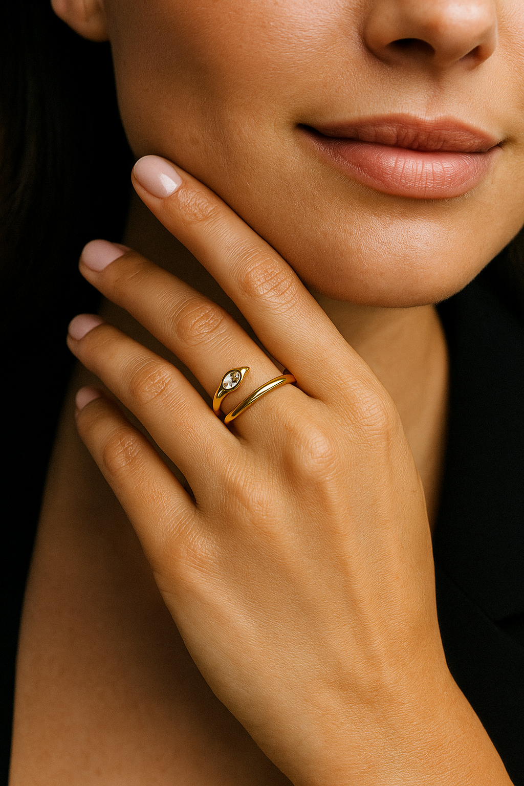 Der Schlangenring „Elara“ vereint minimalistisches Design mit luxuriöser Ausstrahlung. Gefertigt aus rostfreiem Edelstahl und veredelt mit 18K-Vergoldung, ist er langlebig, hypoallergen und angenehm zu tragen. Dank der verstellbaren Größe passt er sich jedem Finger perfekt an.