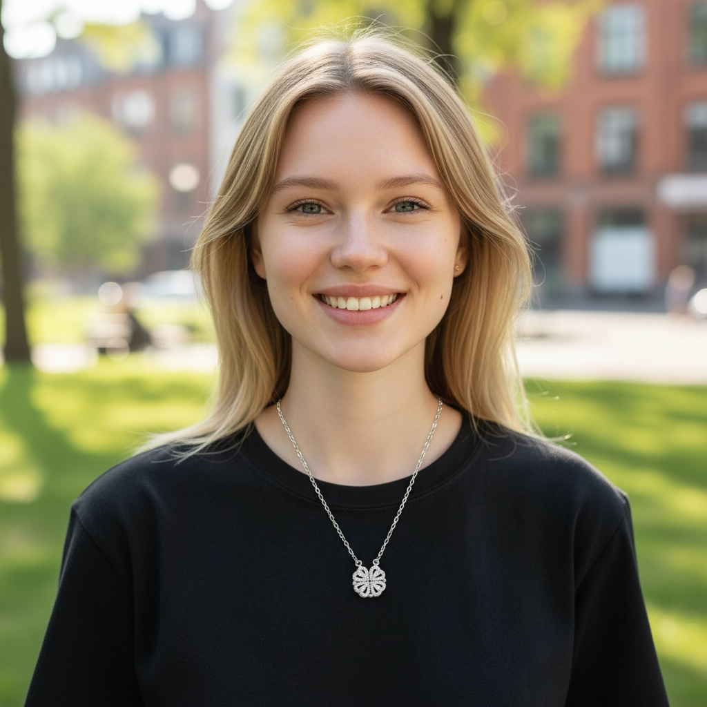 - Elegante Halskette aus hochwertigem Edelstahl, 18K vergoldet, mit Herz- und Kleeblatt-Anhänger. Symbol für Liebe & Glück – ein zeitloses Accessoire und ideales Geschenk für besondere Menschen.